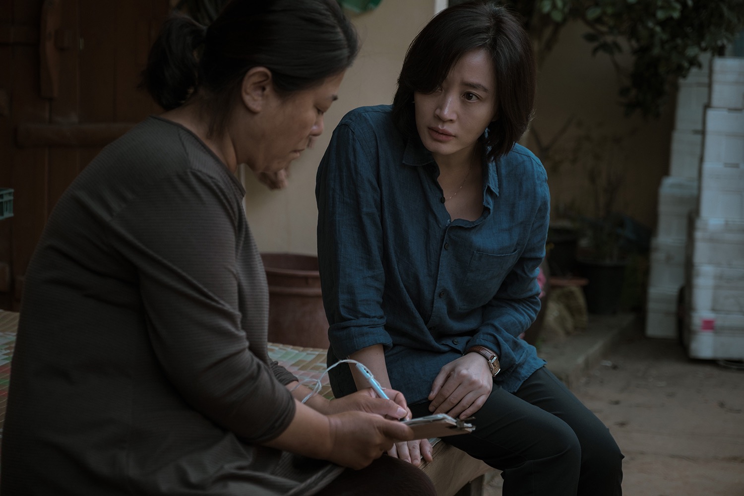 사건의 중심에 좀 더 깊게 다가가면서, 현수의 감정적 기민함이 영화에서 일종의 동력이 된다. 영화는 섬에서 지내던 세진의 나날들과, 섬과 도시를 오가는 현수의 현재를 교차시킨다. 경찰이 세진을 주요 증인으로 여겼던 데에는 세진이 아버지의 비밀스런 자료를 가지고 있거나 알고 있을 거라는 판단이 작용했기 때문이었다. 한편 실종이든 사망이든 세진이 사라진 지금에 와서 중요한 것은 수사의 종결인데, 현수는 표면적으로 그 업무를 수행하면서도 이 아이가 어떤 삶을 살았고 어째서 죽음을 선택했는지를 궁금해한다. 남아있는 건 세진이 사용하던 물건과 그의 모습이 담긴 CCTV 화면뿐. 폐쇄회로 카메라를 노려보는 세진의 얼굴을 현수는 이따금씩 물끄러미 쳐다본다. 단지 그가 알고 있을지도 모르는 비밀에만 관심이 있을 뿐, 누구도 세진의 이야기는 궁금해하지 않는 세상에서, 현수는 바로 그 이야기 자체를 궁금해하는 사람이다. 그러한 예민함은 또다시 누구도 묻지 않았던 순천댁(이정은)의 이야기에로 현수를 데려다준다. 세진의 삶을 돌보고 자신만의 방법으로 섬 바깥의 세상을 세진에게 선물해준 순천댁. 현수는 CCTV 화면 속 세진에게서 자신의 표정을 보듯이, 별다른 말 없이도 순천댁이라는 사람이 어떤 인물인지를 알아본다.